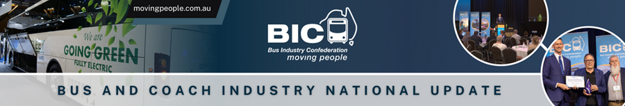 Policy, Advocacy and Technical UpdatesMinisterial Roundtable on Bus SafetyThe Federal Assistant Minister for Infrastructure and Transport Senator Carol Brown convened a Ministerial Roundtable on Bus Safety on 28 August. The Roundtable provided an opportunity to bring key bus industry stakeholders together to discuss practical, regulatory, vehicle design and behavioural changes to reduce the likelihood of future crashes such as the recent Greta and Exford crashes. This invitation only event which focused on issues such as the use of seatbelts on buses, Australian Design Rules, fatigue, and future safety campaigns, was positive and constructive. The BIC tabled its recently produced Bus Safety Initiatives Paper with Tony Hopkins – BIC Chair and Dean Moule – BIC’s National Technical Manager, speaking on a range of issues along with other industry leaders including Michael Christian (Christian’s Bus Company), Andrew Jakab (Dyson Group), David Burgess (Ventura Bus), Huw Bridges (Transdev John Holland), Dan Smith (Greyhound), Rowena Gilberston (Metro Tas), Ashley McHarry (McHarry’s Buslines), Damian Lee (Murrays Coaches), David Mead (CDC NSW), Brenton McCallum (Volgren), Sean Smith (BLK Auto), Dan Marks (Bustech Group), Sid Rallapalli (Nexport) and Tony Lowrey (Volvo Bus). Others present at the Roundtable included Tom Brown (RTBU), Mark Dean (AMWU), Jack Boutros (TWU), Paul Salvati (NHVR), Geoff Allan (Austroads), John Gaffney (Bus Safety Taskforce) and department officials from the Commonwealth, NSW, Queensland, Tasmania, and the ACT. The Senator is convening another Roundtable in the coming weeks with her state colleagues from transport and education. We look forward to learning the outcomes of these deliberations. Download the Bus Safety Initiatives Paper.