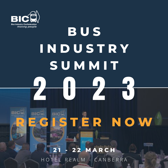 Bus Industry Summit 2023This 21 to 22 March, join us in Australia’s capital for the Bus Industry Summit 2023. The Summit is to be held at the National Ballroom, Hotel Realm, Canberra. The 2023 Summit provides BIC Members, Government representatives and the greater industry, with a platform to come together to network and hear about National Heavy Vehicle Law, Zero Emissions Busses and Environmental and Social Governance. The Summit will have concurrent sessions on technical issues, Industrial Relations, and workforce on day 2. We are excited to announce to members, The Summit is open to the whole of the bus and coach industry and registrations close midnight, 3 March 2023. Keep an eye on our website events calendar and our LinkedIn for more information. 2023 BIC National ConferenceThe 2023 BIC National Conference will be held 16 to 19 October at the Energy Events Centre, Queens Drive, Government Gardens, Rotorua, New Zealand. The BIC National Awards will soon open for nominations, for more information look out for our e-Bulletins and keep an eye on our website events calendar and our LinkedIn.